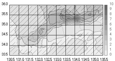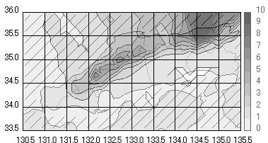 6.中国地方において、下層の風速によってどのような降り方をしているか