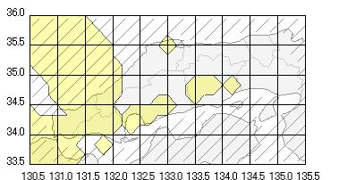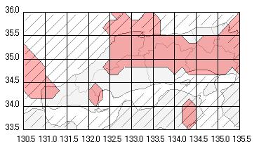 中国地方西部や山陽沿岸に広がっており、岡山県では中南部に一部がかかっています。